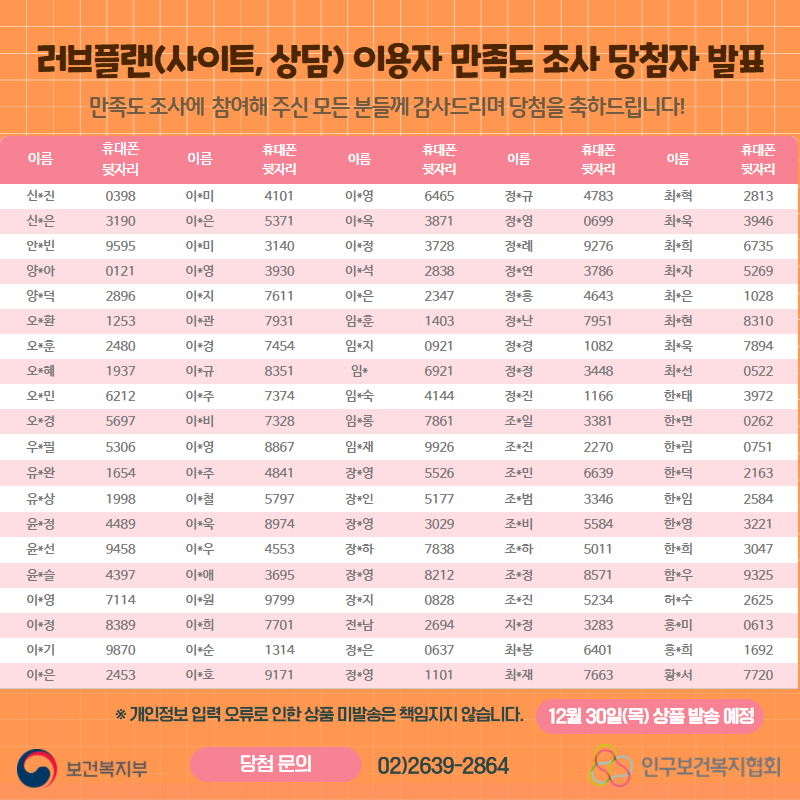 [당첨자발표] 러브플랜(사이트, 상담) 이용자 만족도 설문조사